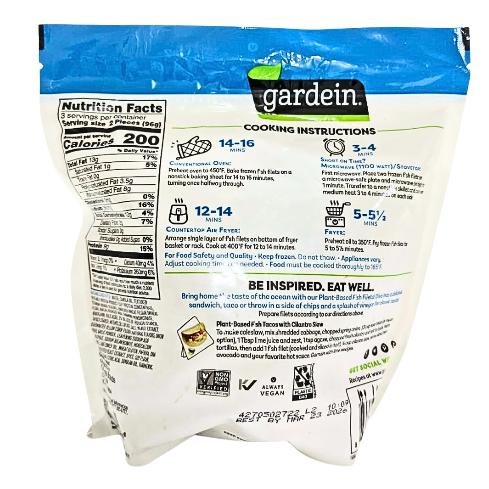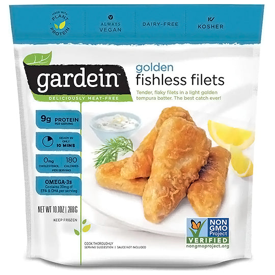 Cubiertos con una masa tempura dorada clara, los filetes sin pescado Gardein Golden son la mejor captura vegana de la historia. Tierno y escamoso, estos filetes a base de plantas contienen omega-3, no tienen colesterol y contienen 9 gramos de proteína por porción. En 10 minutos, estos filetes congelados sin pescado Gardein son una deliciosa opción flexitariana cualquier día de la semana.